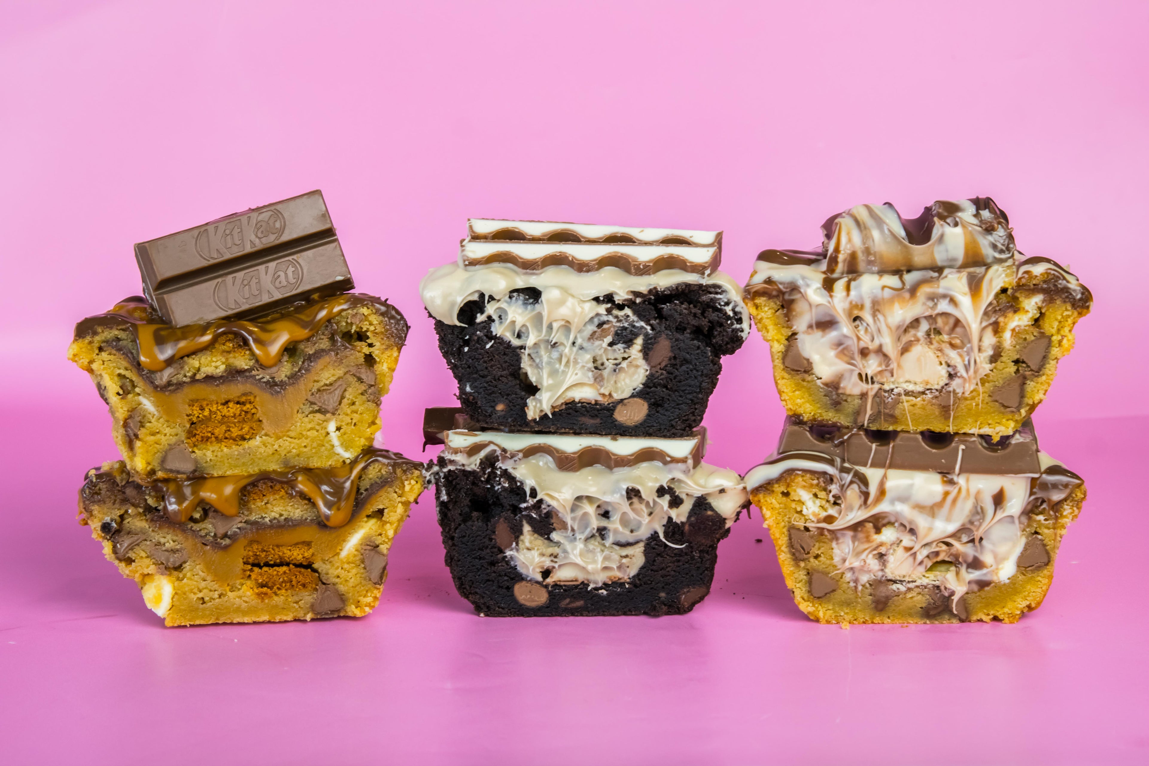Celebrate in style with our cookie cakes! Made with layers of gigantic choc chip cookie, they’re soft and gooey on the inside, golden and crunchy on the outside—pure perfection in every bite.